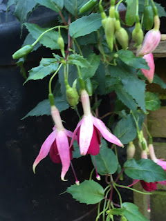 De afgelopen weken is er natuurlijk heel wat regen gevallen en ik had hier dus een aantal planten die daar maar wat blij mee waren. Mijn fuchsia’s groeien als gekken en bevatten heel veel knoppen. Nu dus mooi weer nodig en dan zullen ze weer massaal in bloei komen te staan. Ook de emmer vol met afdankertjes waarvan ik het zonde vond om weg te gooien, is een en al knop. Zodra hij in bloei staat dan zal ik hier wel een foto plaatsen.