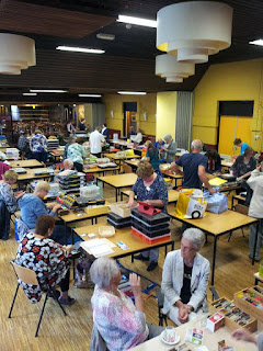 En dan opeens is het bijna 5 uur. Het lijkt zolang, een beurs van 9 tot 5 uur, maar toch vliegt de dag voorbij. Ik zie heel veel mensen, waar ik allemaal zo graag mee had willen ruilen, maar dan moeten we minstens door tot 12 uur in de nacht. Want geen tijd voor Sonja, Marjoke, Irene, Saakje, Lenie en al die anderen. O en wat te denken van Ilona met al haar schoenendozen. Misschien heb ik wel heel wat gemist.